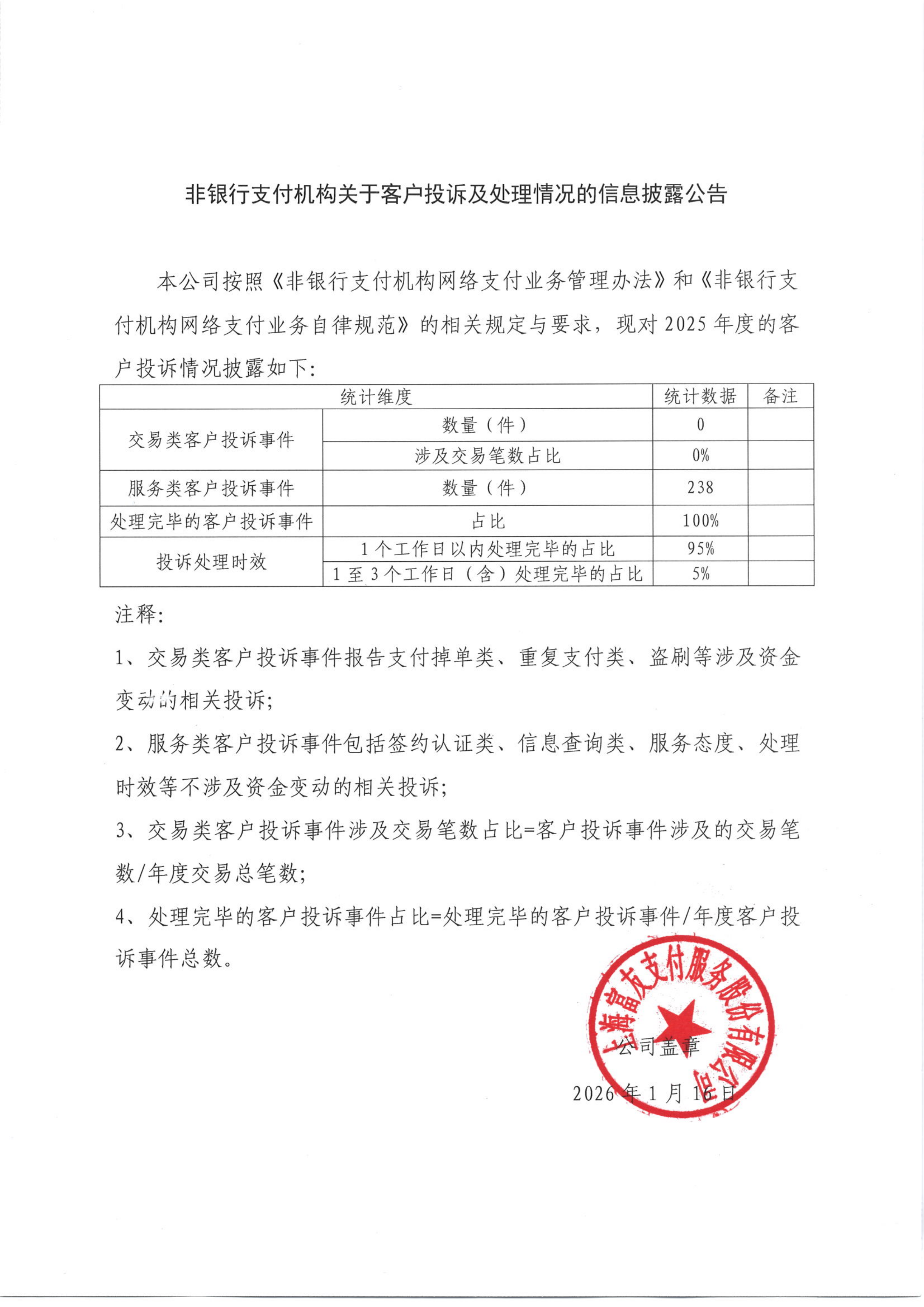 非银行支付机构关于客户投诉及处理情况的信息披露公告2025年
