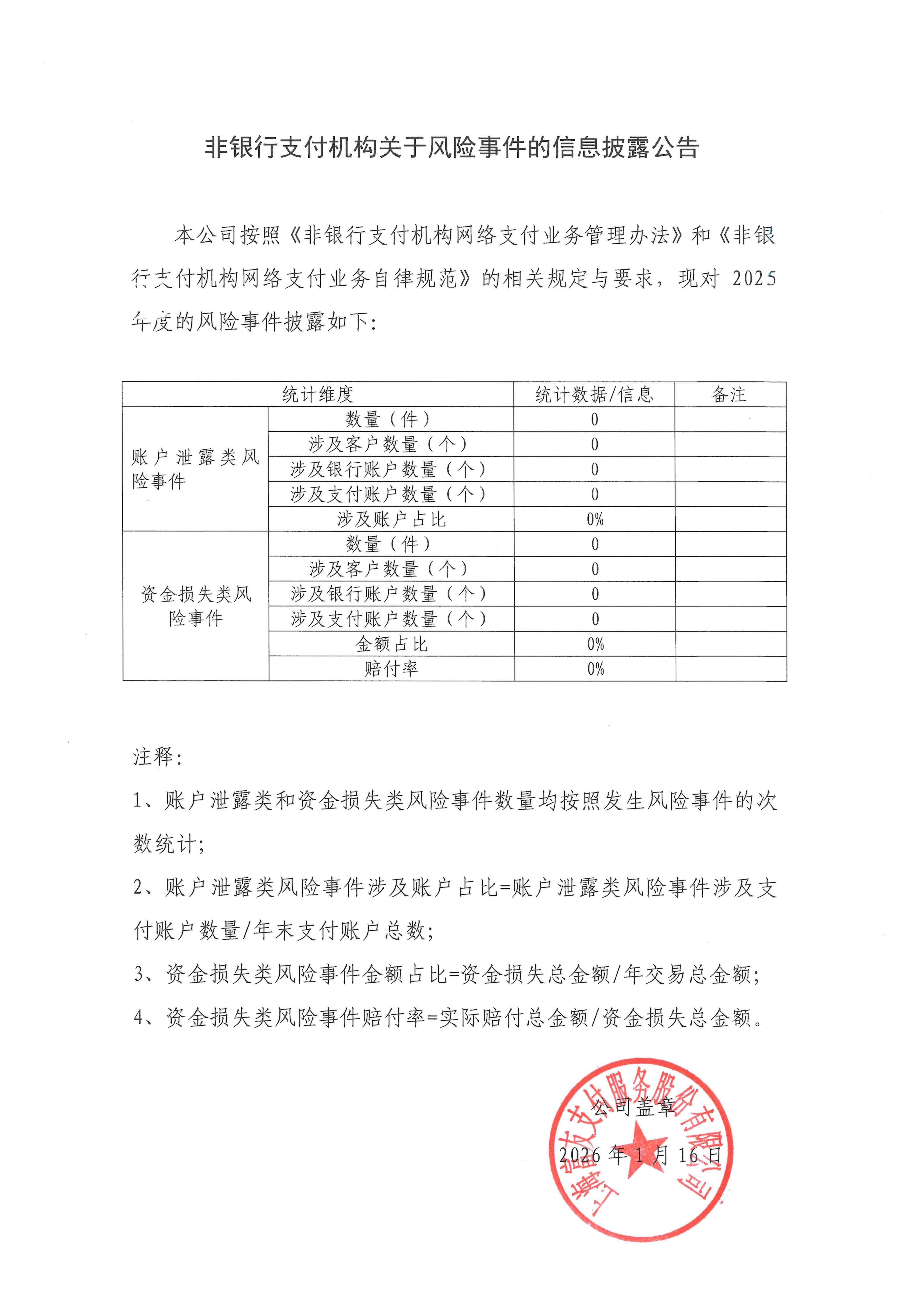 非银行支付机构关于风险事件的信息披露公告2025年